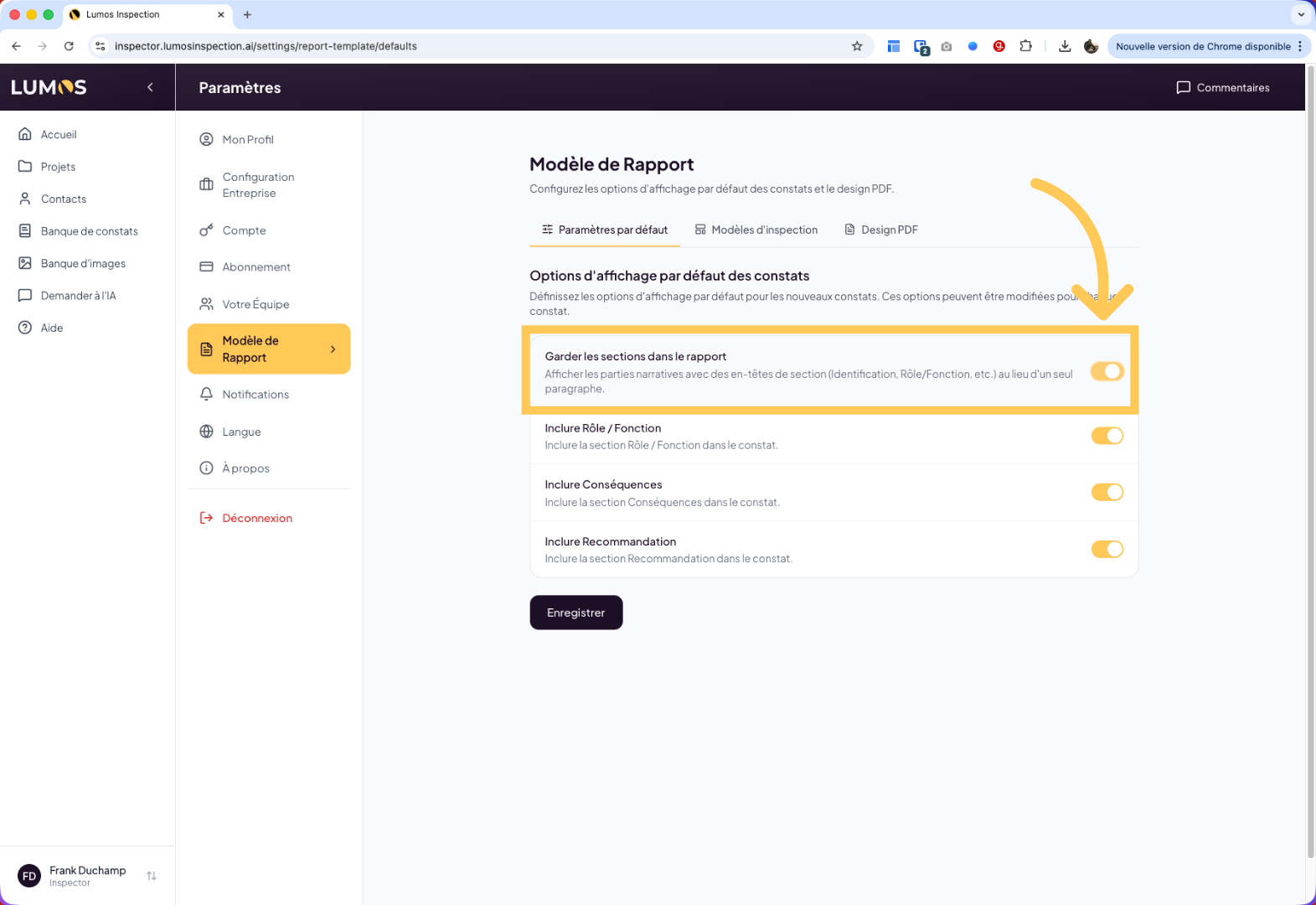 You now know how to configure the findings display format in the report! For more information about Lumos Inspection, visit help.lumos.property .