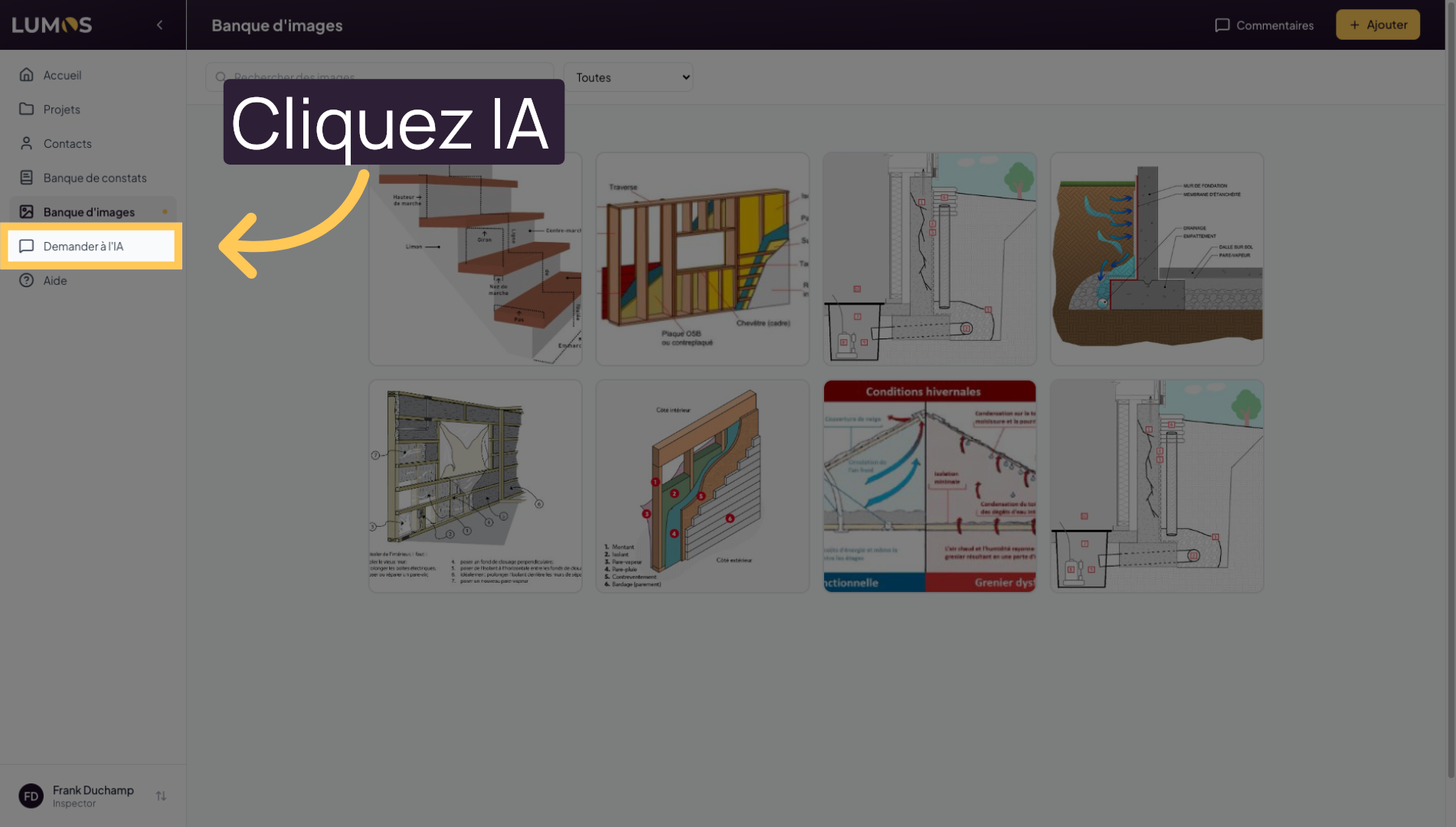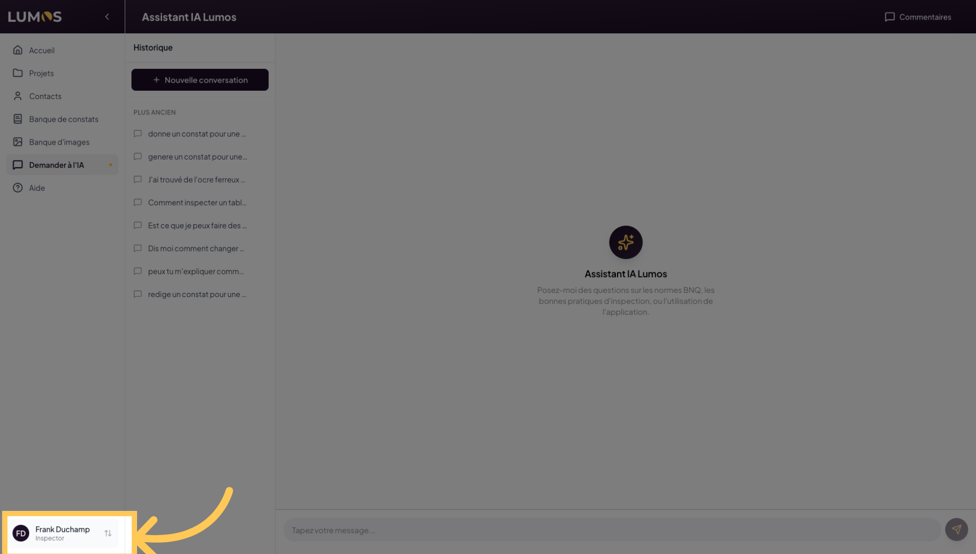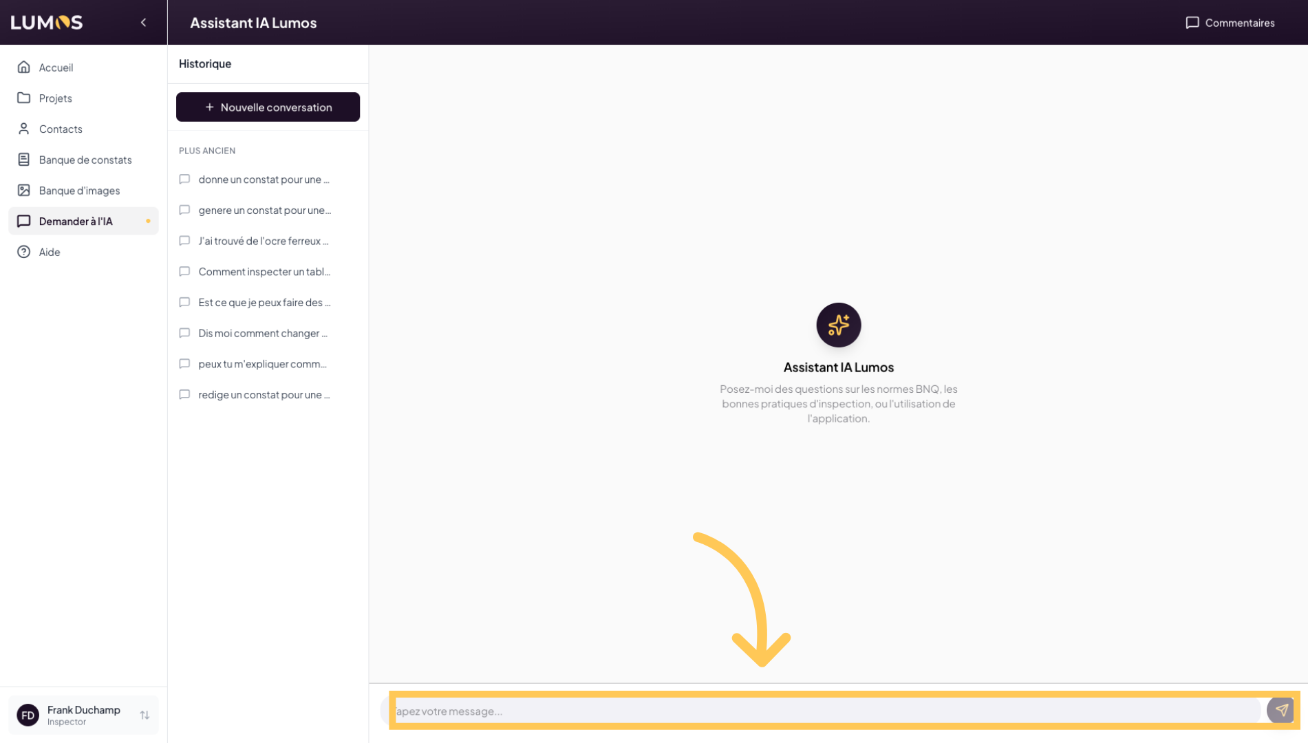 Lumos Inspection comes with a built-in artificial intelligence. It is trained and specialized in building inspections, with access to the building code, civil code, and current standards such as the BNQ standard. You can ask technical questions or request help writing your findings.
