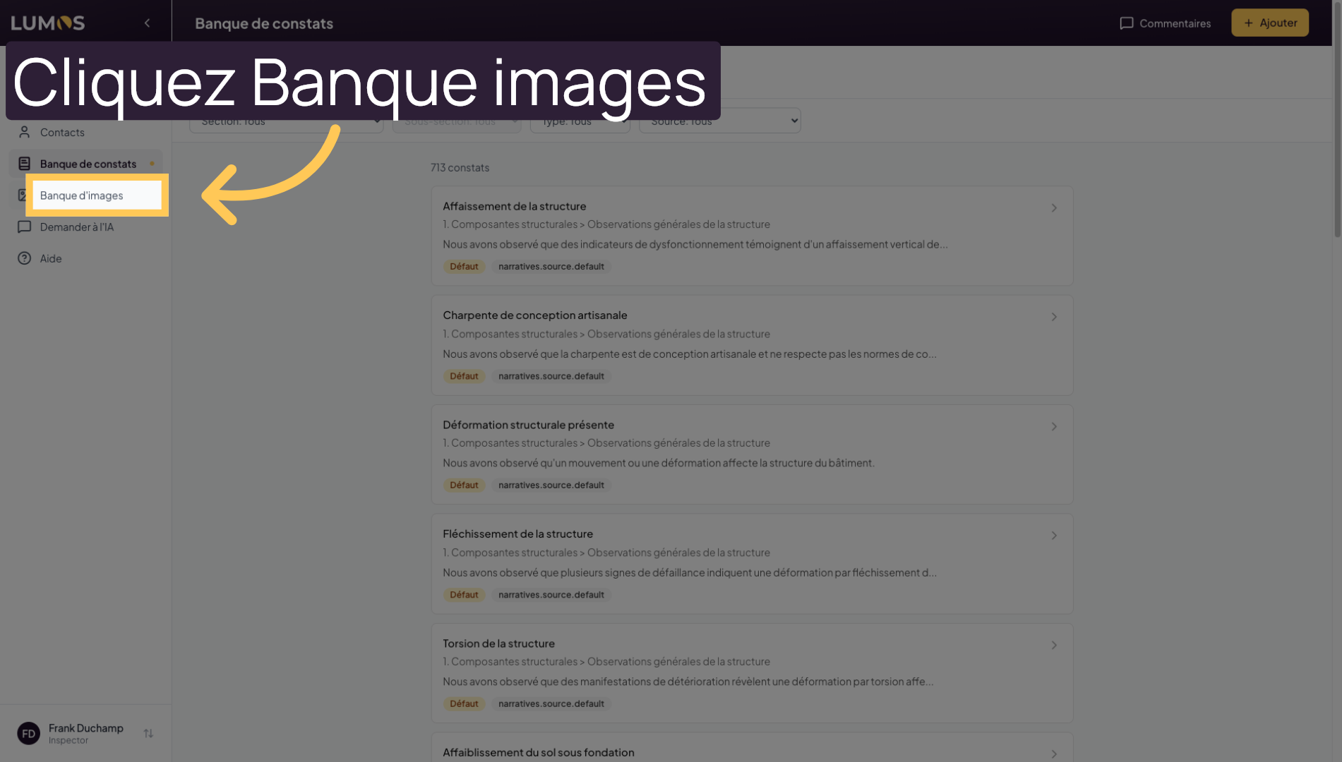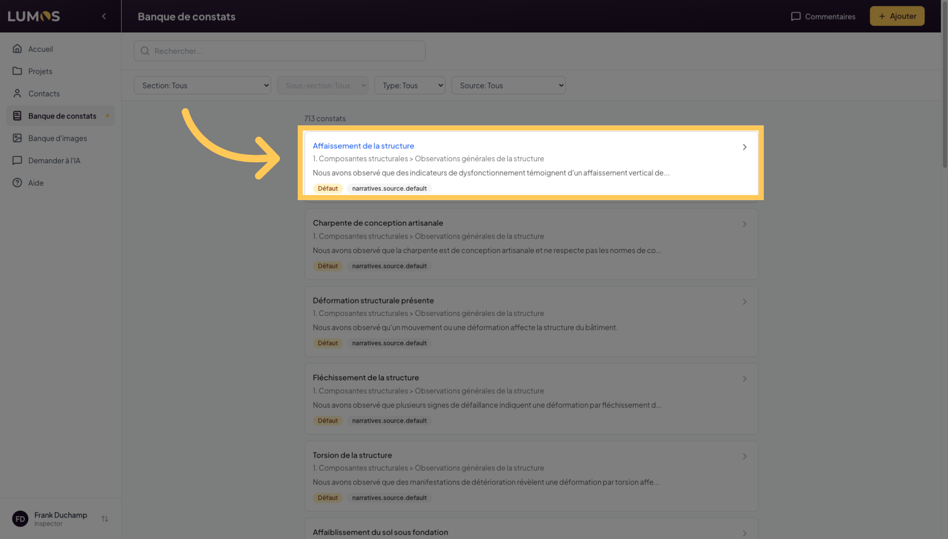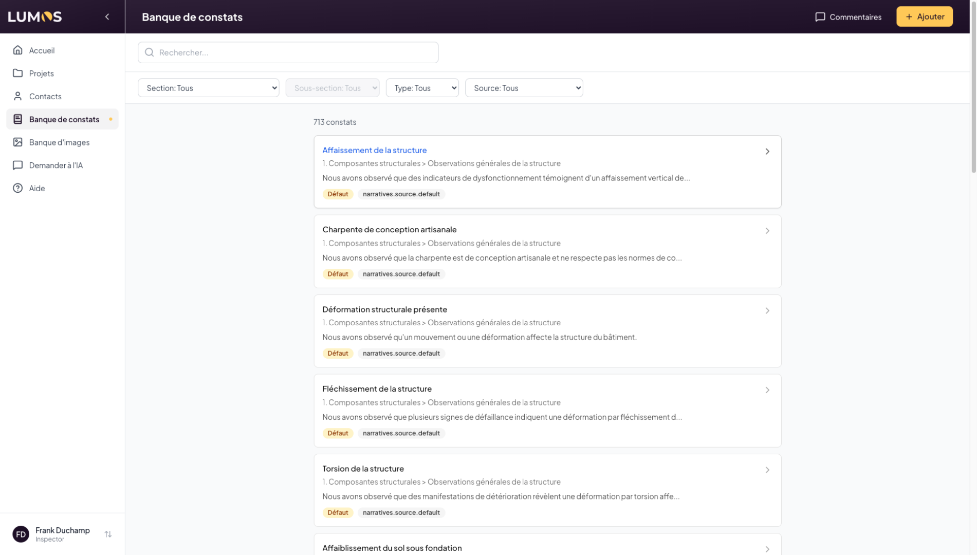 In this section, you can browse and create findings. The Lumos platform offers hundreds of pre-written findings compliant with current standards. You can easily create your own to access them when building your inspection reports.
