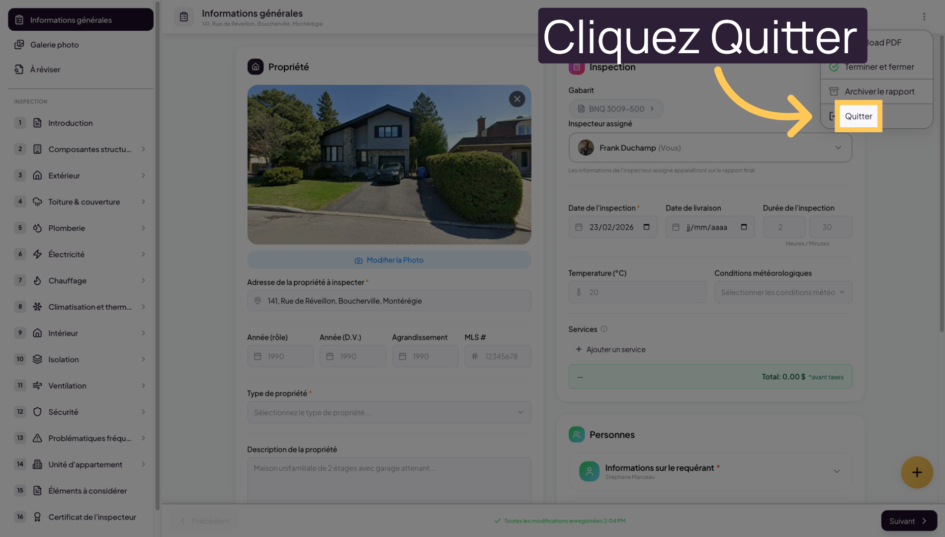 The service contracts you configure here are then accessible from inspections. Once ready, you can attach your contract to inspections to request client signatures, or simply send it by email. We invite you to watch the inspection report video for more information on how service agreements work.