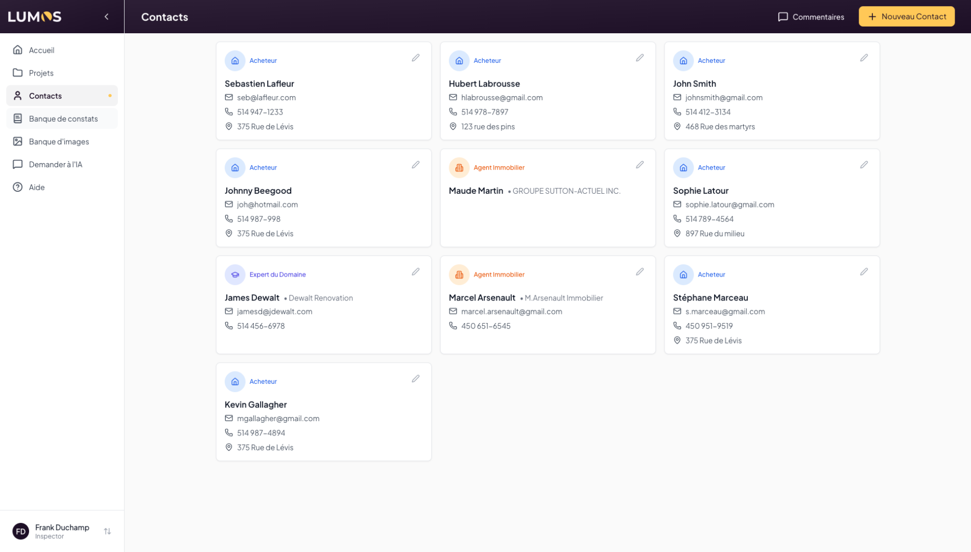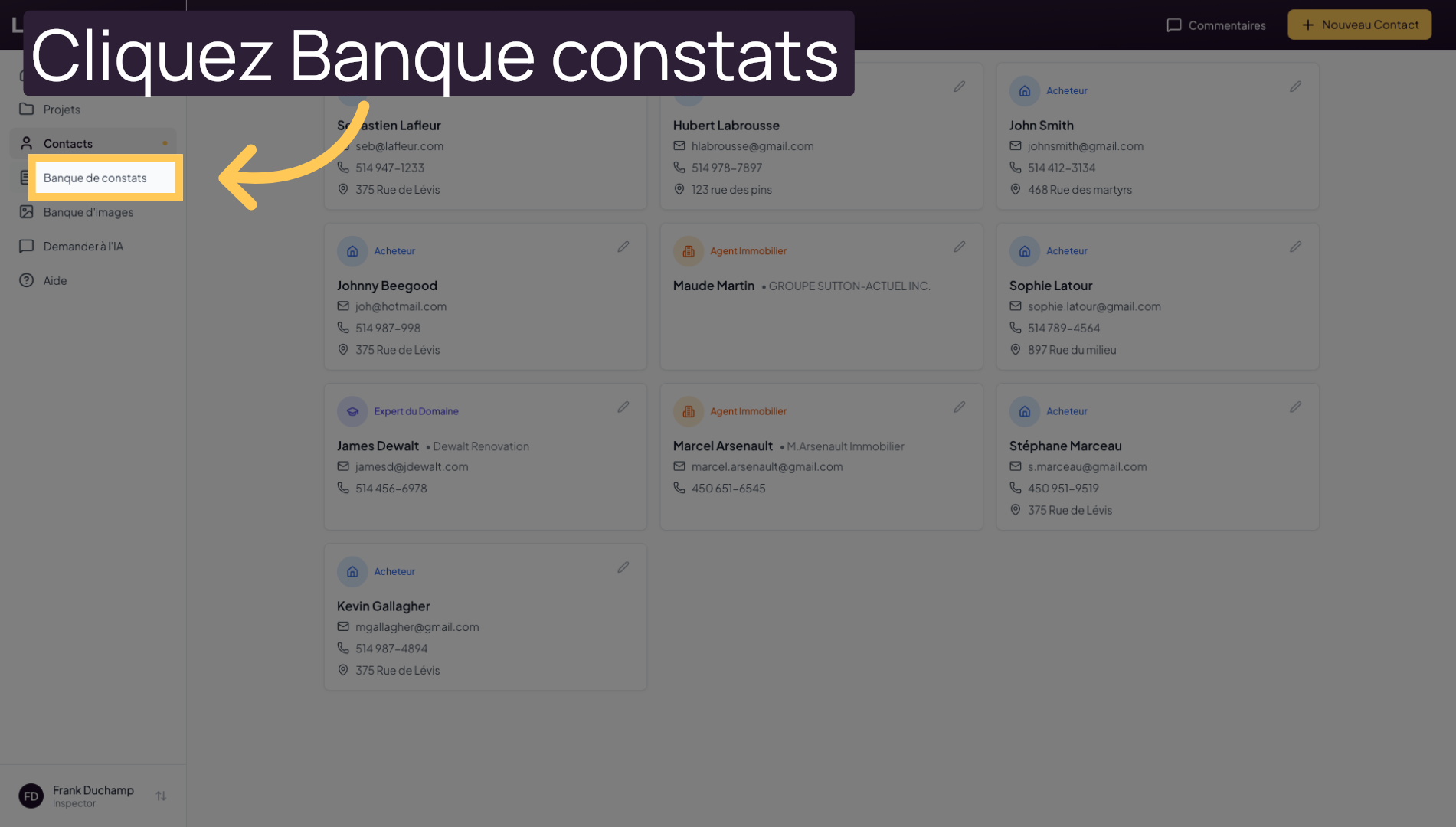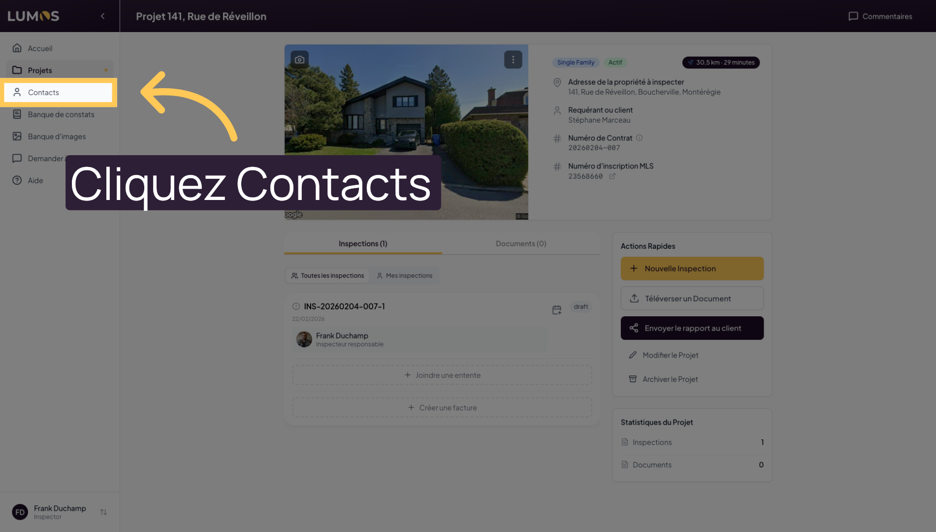 In the main navigation, click on “Contacts” to manage the people associated with your projects and inspections.