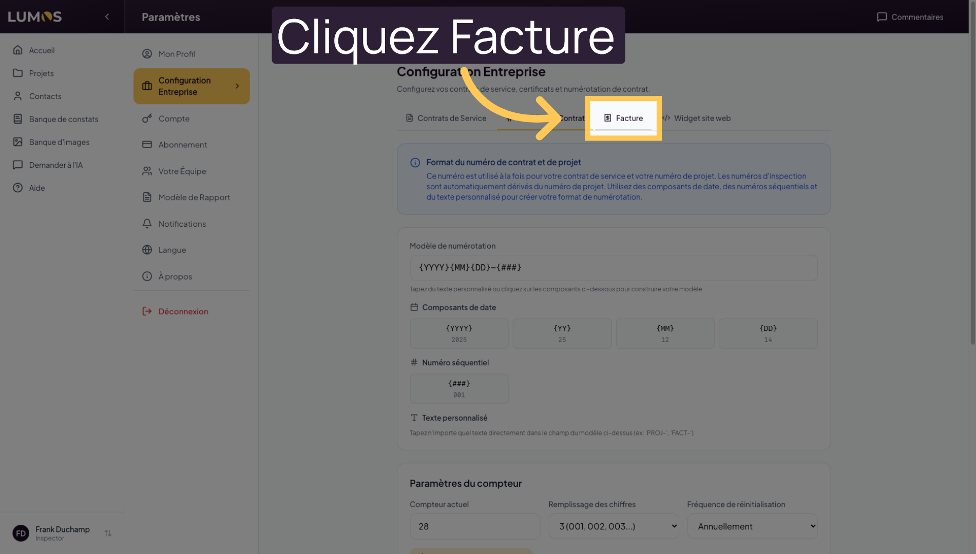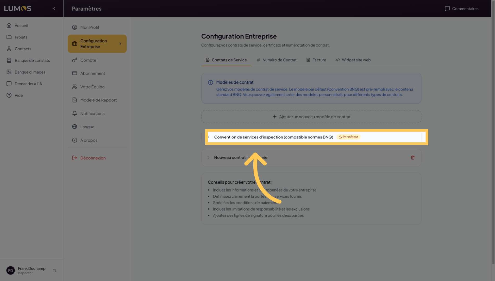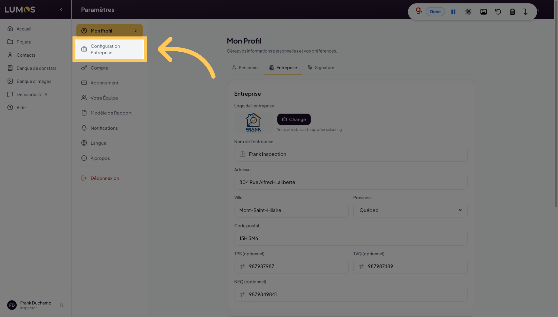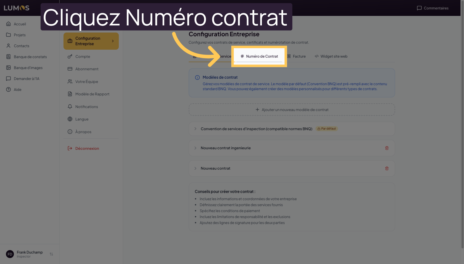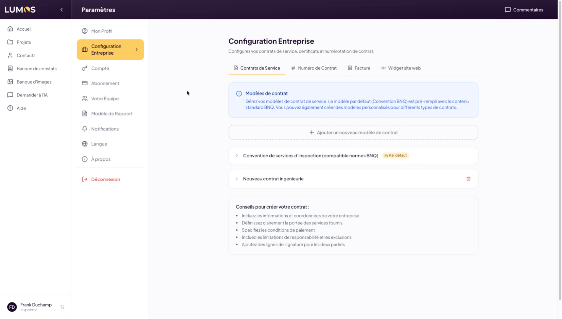 This tutorial guides you through configuring your Lumos account and profile. You will learn how to customize your information, add a signature, a logo, and manage your contracts and preferences.