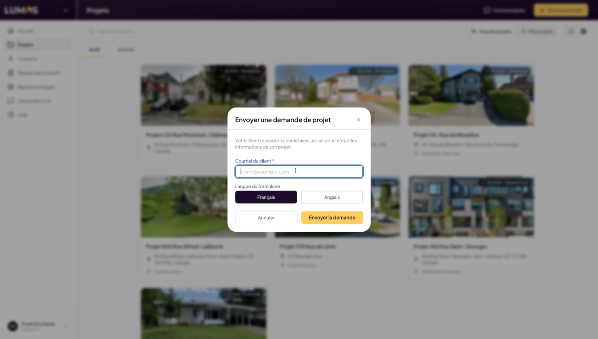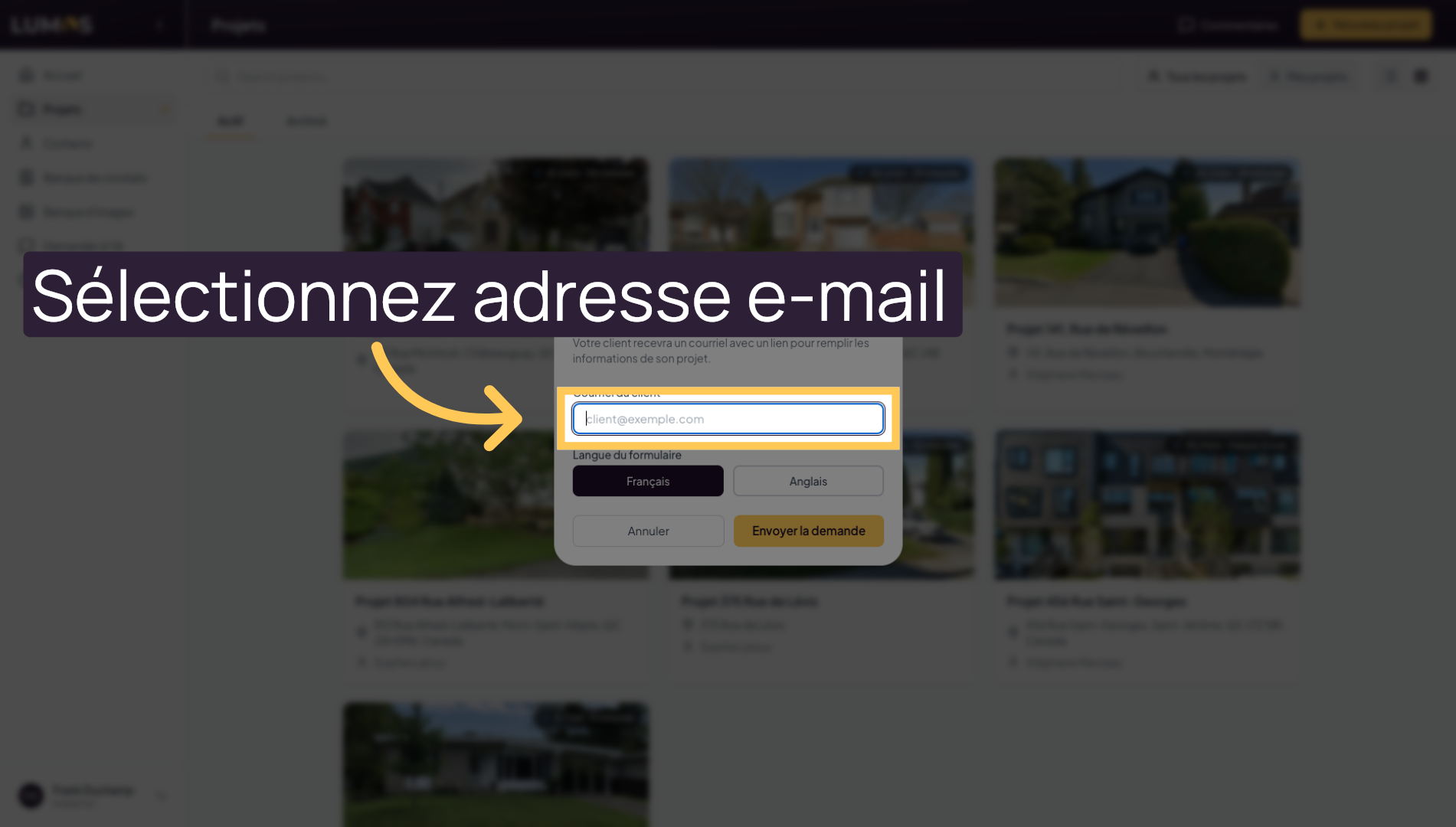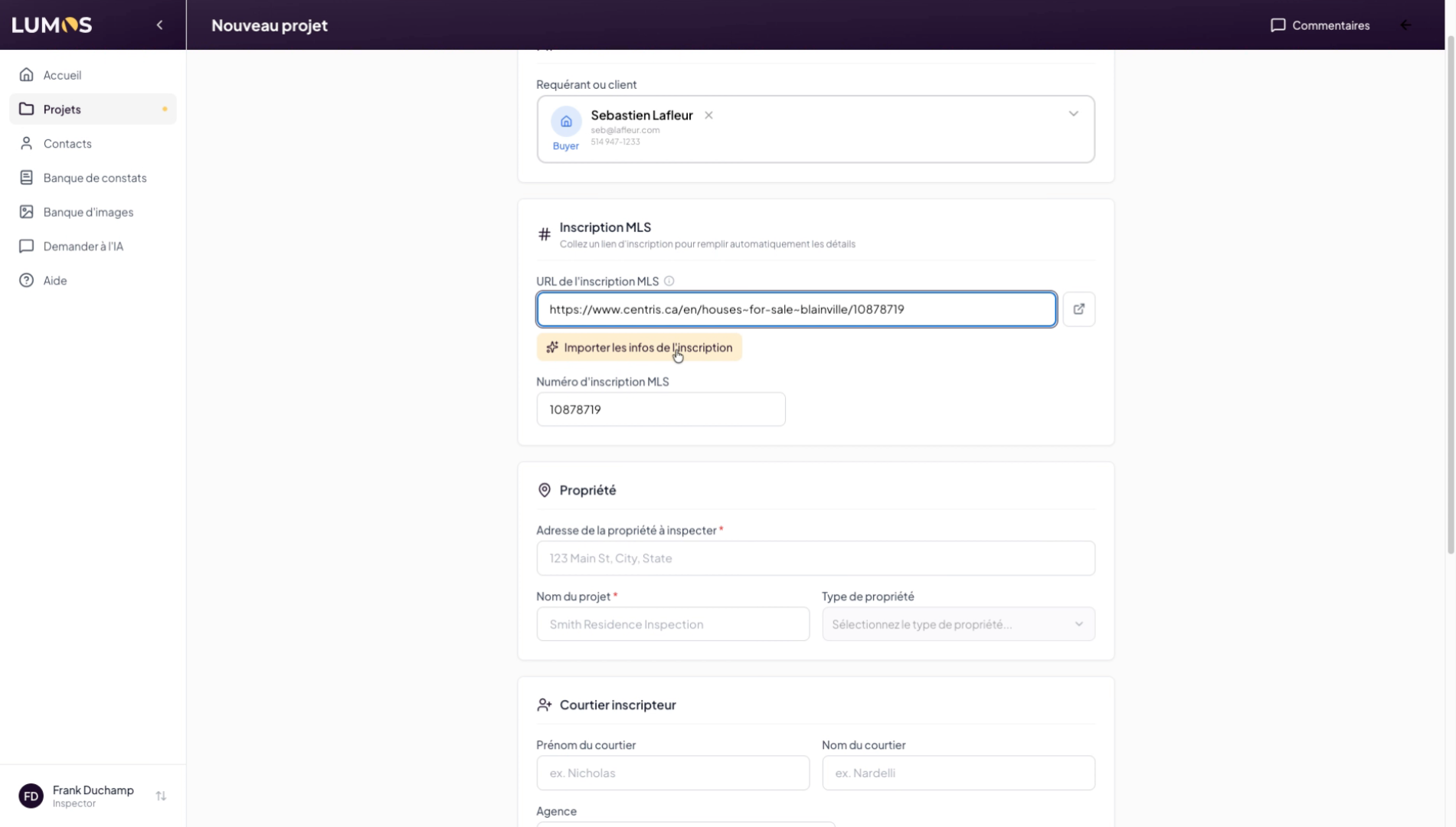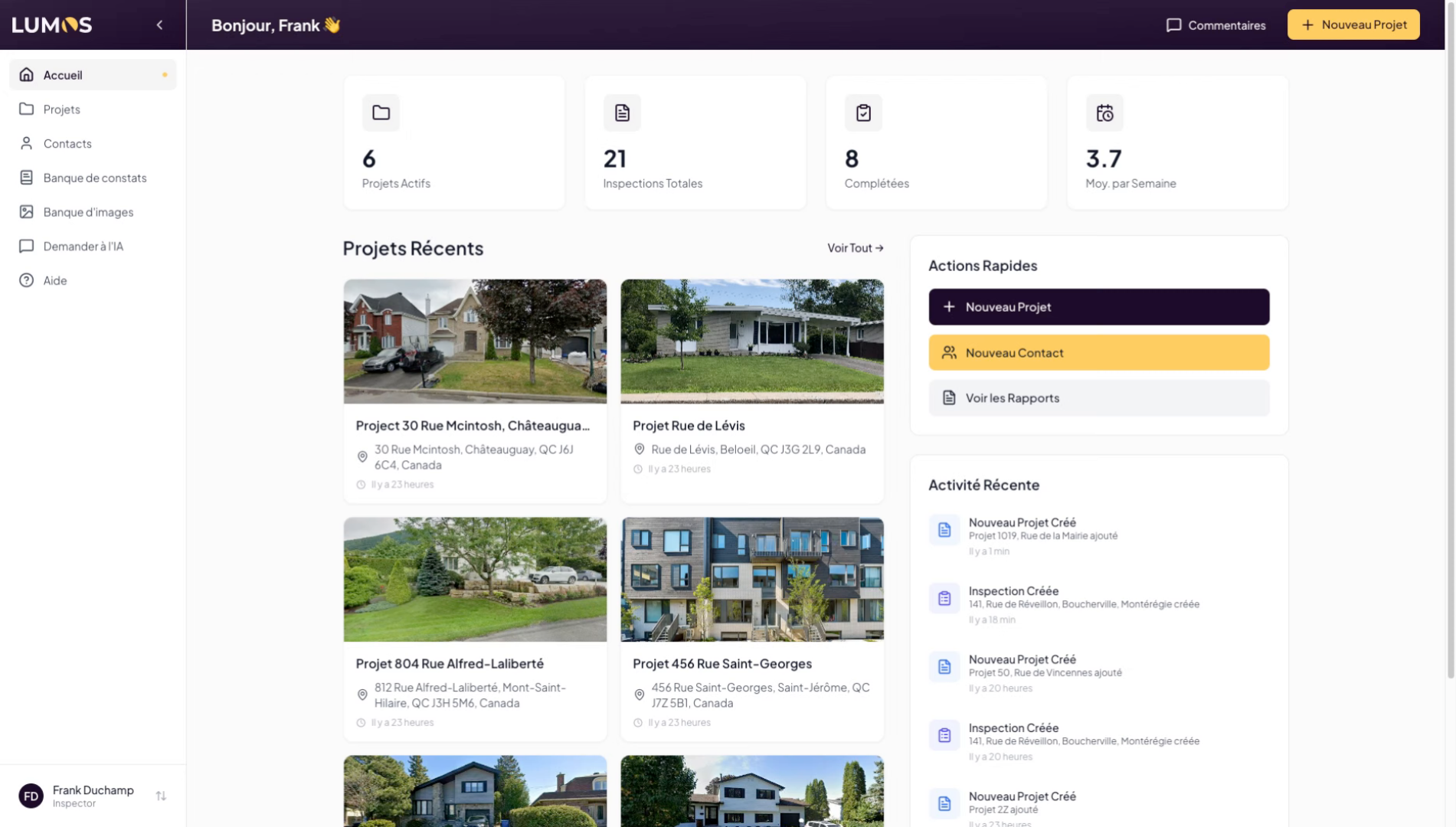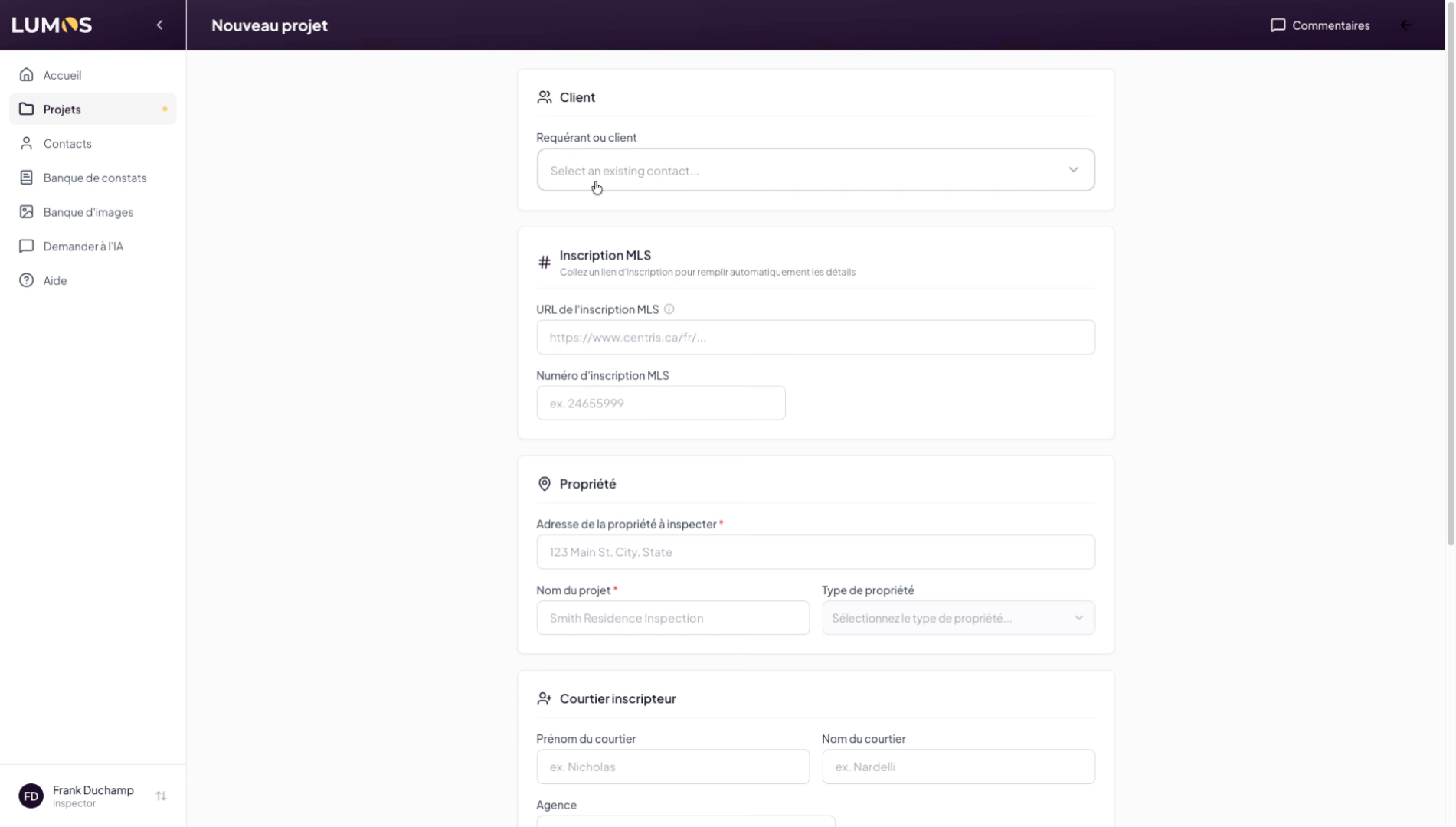 This tutorial guides you through creating a project in the Lumos Inspection application. You will learn how to use the different options available to configure a project linked to a specific address.